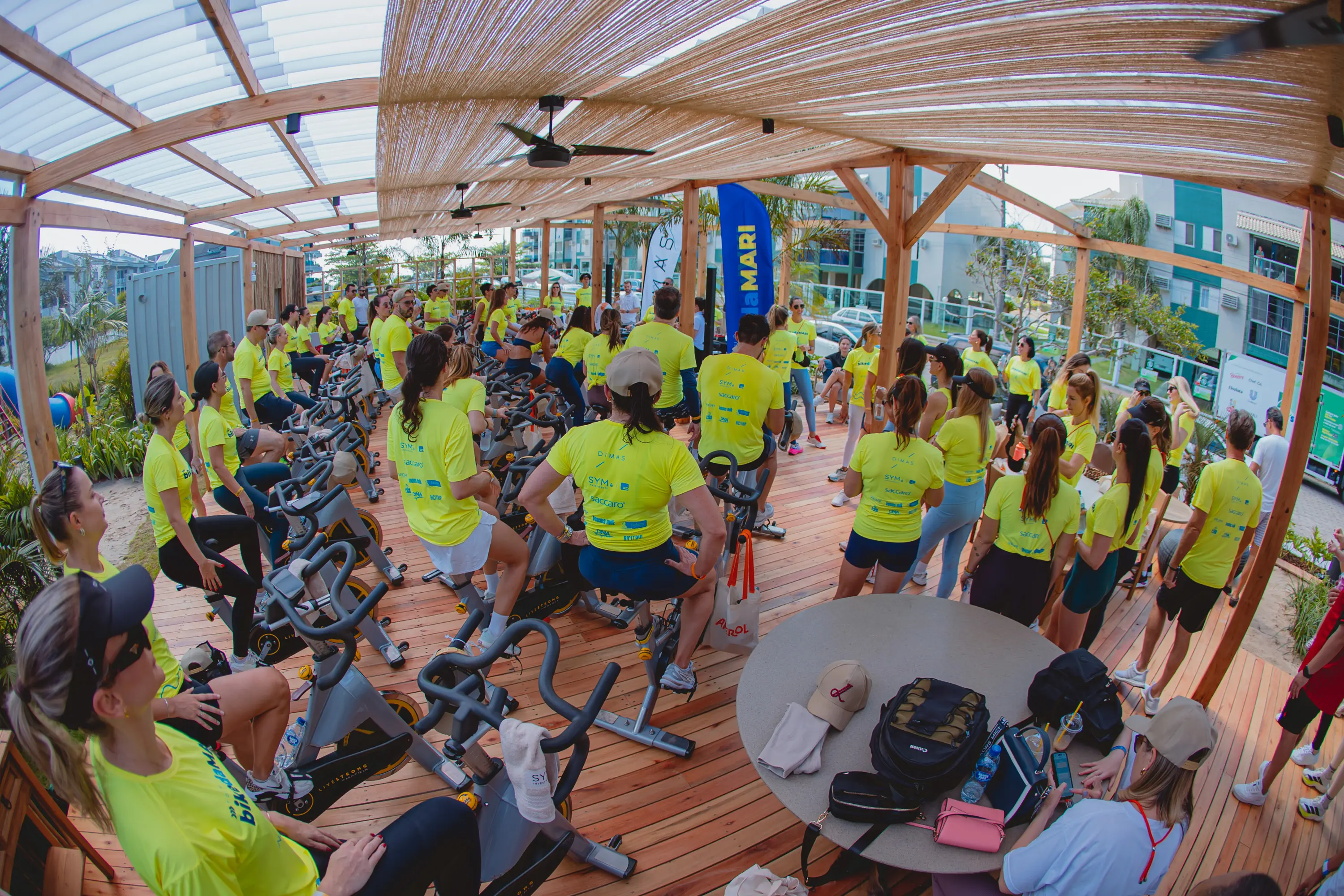 Serão duas aulas de bike indoor, às 8h30 - já com sold out - e 9h30, reunindo cerca de 70 bikes em um grande set de energia, movimento e música com a professora e DJ Mari Agapito.
