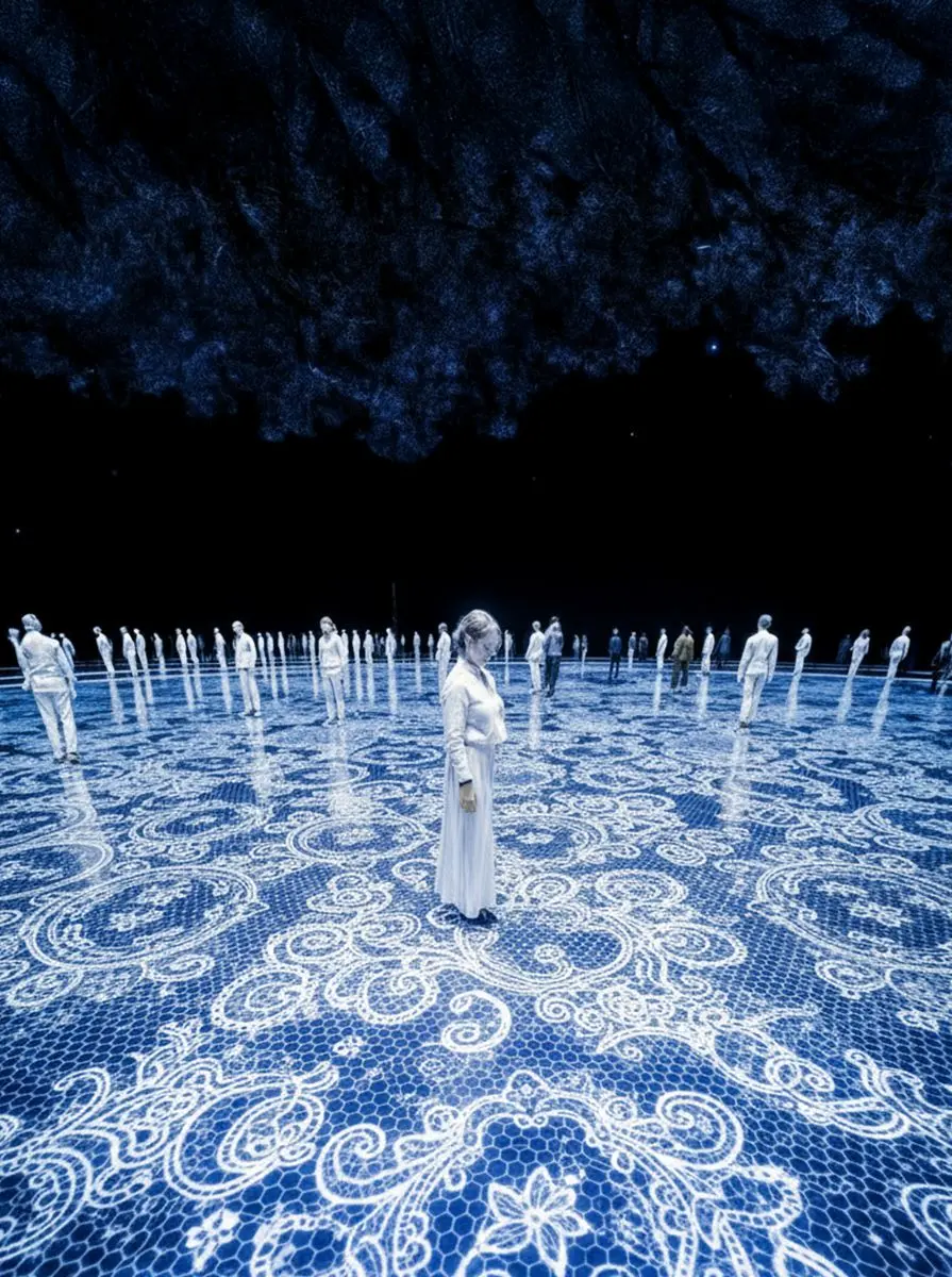 Renda-se à Floripa – Uma grande renda de bilro “tecida” coletivamente no chão do parque, desenhada por rastros de luz captados por sensor térmico.