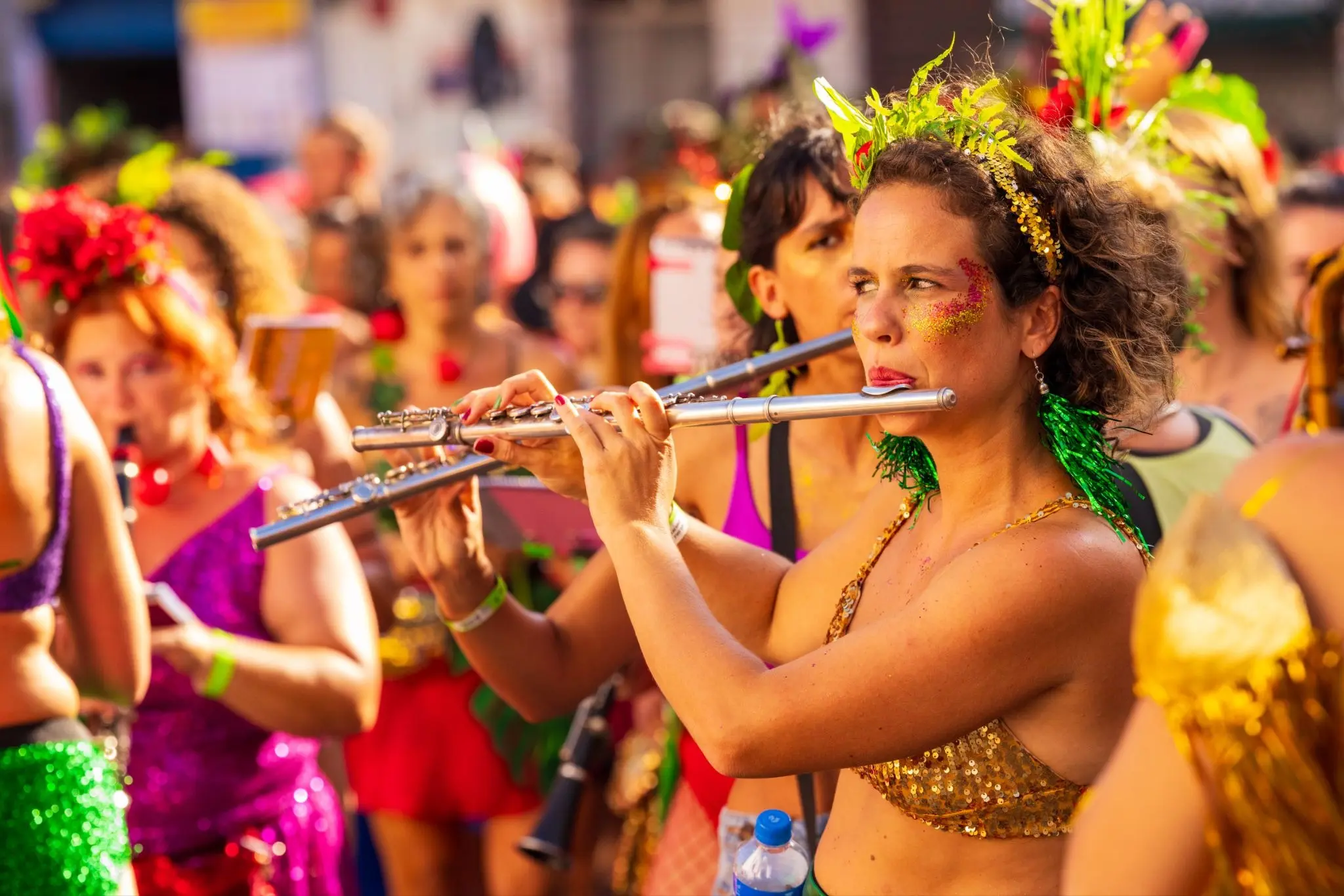Sob a direção musical de Eva Figueiredo, clarinetista e saxofonista, o bloco chega ao domingo de Carnaval com um repertório que inclui duas obras de nomes centrais da música instrumental brasileira, reconhecidos internacionalmente: “O Ovo”, de Hermeto Pascoal, e “Nanã”, de Moacir Santos. Entre os arranjos apresentados estão Figa de Guiné, com arranjo de Paulina Montaldo; Vaca Profana, com arranjo de Lia Pelison; Nanã, O Ovo e Emoriô, com arranjos de Eva Figueiredo; além de O Canto da Cidade, Erva Venenosa, Oxum e Ragatanga, em arranjos de Gabriela Mafra.