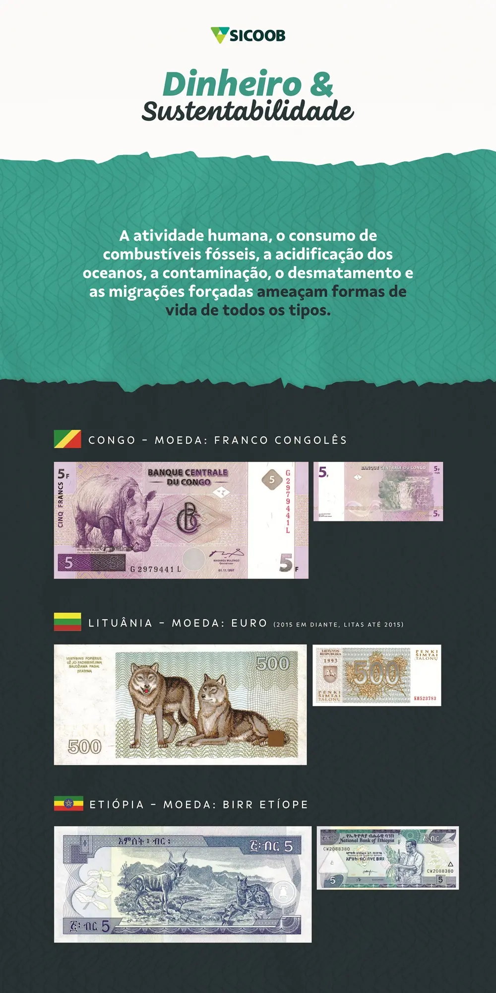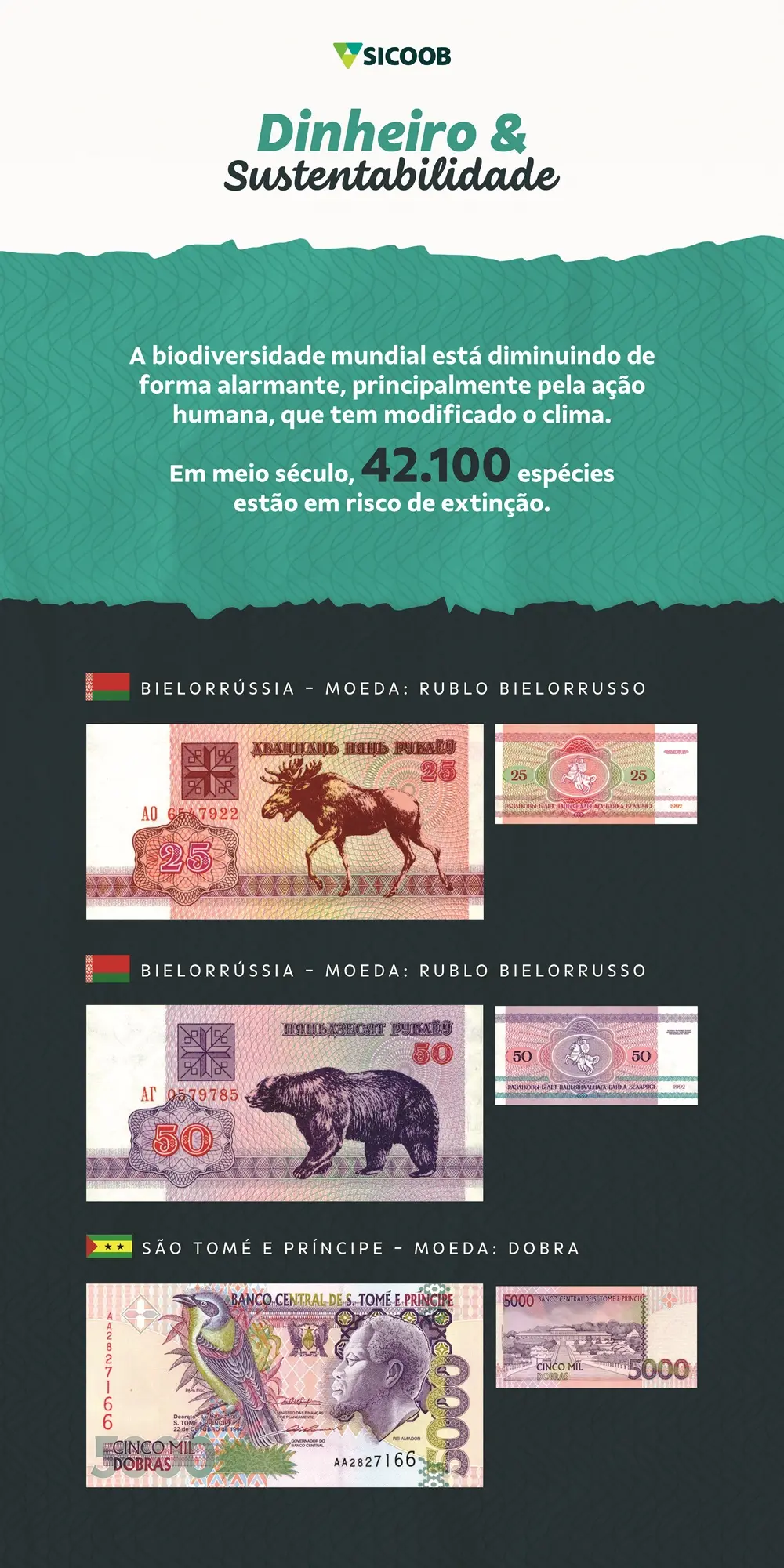 A exposição “Dinheiro e Sustentabilidade” ocorre nos dias 22 e 23 de março, no Floripa Airport, e apresenta cédulas de 17 países que retratam animais em seu dinheiro, incluindo o Brasil. A mostra reúne espécies como lobo, tartaruga, beija-flor, sapo e macaco, em 18 painéis que também apresentam informações sobre a preservação da fauna e da flora. Ao destacar essas representações presentes no dinheiro de diferentes países, a exposição busca sensibilizar o público sobre a urgência de adotar práticas sustentáveis para proteger as milhares de espécies que correm risco de extinção no planeta.